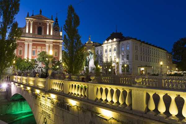 O ponto central da cidade é a área ao redor da Praça Preseren, onde se vê a bela Igreja Fransciscana (Franciscan Church) e vários outros prédios, além da Tromostovje (Triple Bridge) ou Ponte Tripla, feita com as pedras de uma ponte antiga da cidade, do ano de 1842. A Ponte Tripla é ainda mais bela à noite e oferece aos visitantes uma ótima porta de entrada para a Cidade Velha.